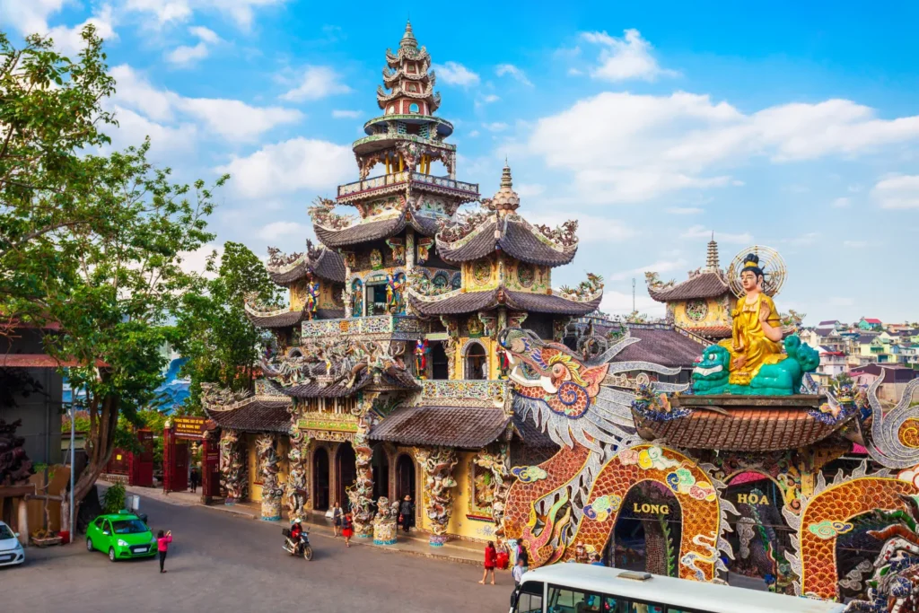 - Пагода Линьфуок — уникальный храм, полностью украшенный мозаикой из керамики, стекла и хрусталя.