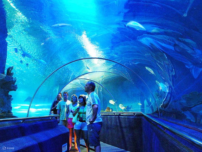 Прогулка по океанариуму и знакомство с морскими жителями, включая посещение пруда с хищными рыбами.